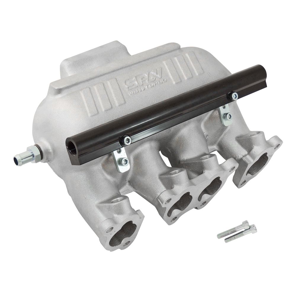 O coletor de admissão plenum da SPA Turbo foi pensado para aumentar o fluxo e volume em relação ao modelo original, e é a solução perfeita para quem quer desempenho e durabilidade, garantida pela construção em alumínio fundido (sem soldas). Disponível nas opções para 4 e 8 bicos injetores com flautas em alumínio billet anodizado e com saída do corpo de borboleta lateral, ideal para uso com intercooler frontal. Além disso, é possível optar entre a furação para TBI padrão Chevrolet Omega 4.1 ou sem furação, para que você possa escolher o melhor corpo de borboletas para seu projeto (até 70mm).