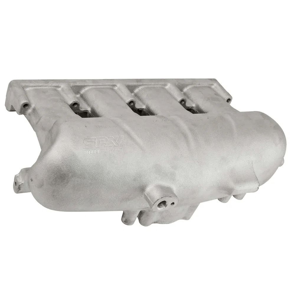 Fabricado em alumínio fundido, este coletor substitui a peça original que é fabricada em plástico e não suporta altas pressões de turbo.