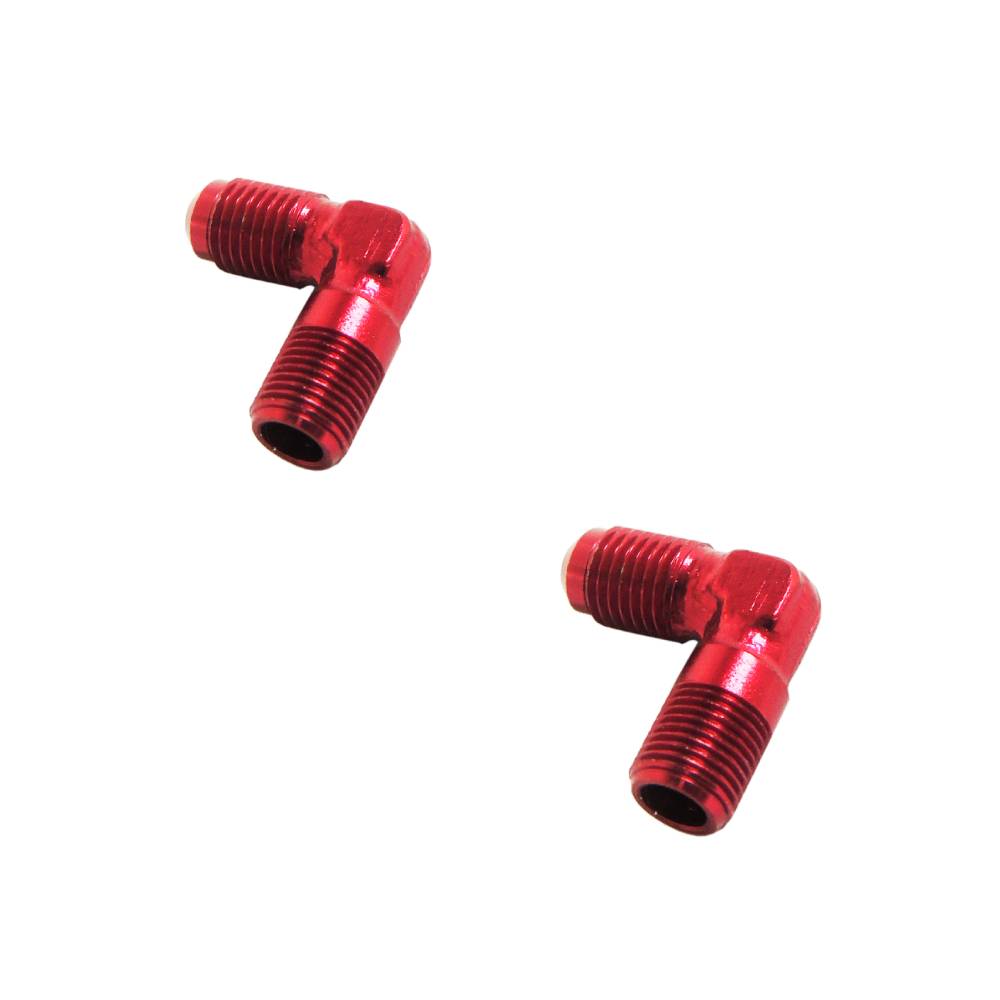 NIPLE 90º EM ALUMÍNIO ANODIZADO VERMELHO 1/8" NPT X 1/4 SAE - 2 unidades